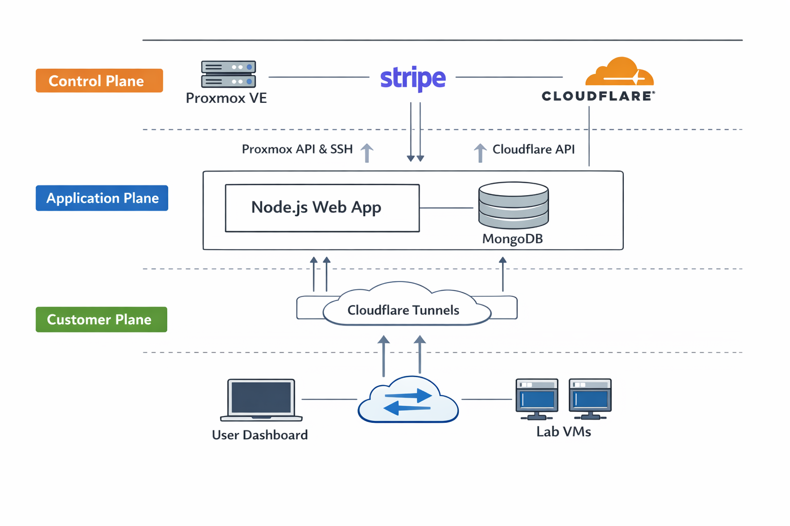 - The control plane: Proxmox, Stripe, and Cloudflare