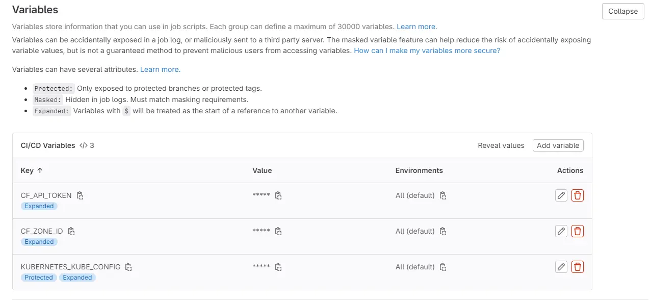 In a previous post I went through the basics on getting a gitlab pipeline defined and deploying a container to my k3s cluster. The pipeline references several variables so lets talk about where those variables need to be defined.